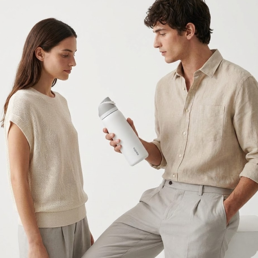 🌊 Tecnología FreeSip™ (Lo mejor de dos mundos): Bebe a tu manera. Mantén la botella vertical para usar la pajilla integrada (sorbos elegantes) o inclínala hacia atrás para beber grandes tragos por la abertura ancha.